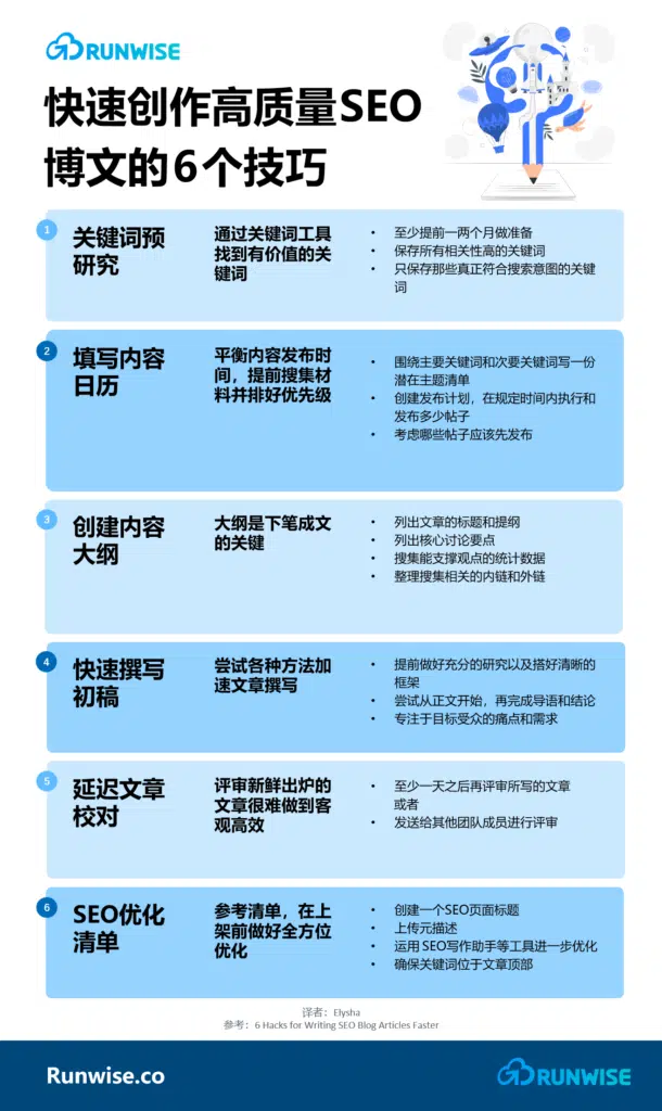 虽然我们确信大多数读者不认为快速撰写SE0博文意味着要等到第四步才开始写,但你现在可以看到,当所有的准备工作提前完成后,实际写作的部分会快很多。