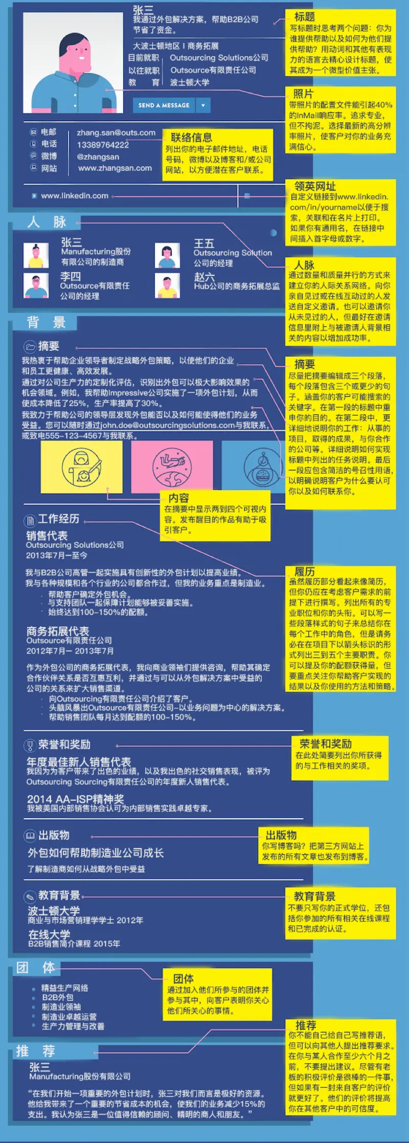 个人资料应该注重客户的成就,而不仅是自己的成就。