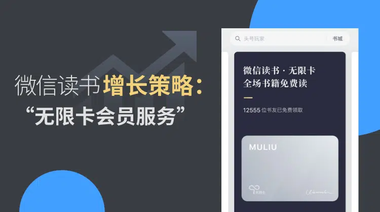迄今为止,微信读书的 “无限卡” 玩法已迭代了超过十个版本。2018 年 9 月无限卡上线后, 活跃用户数出现了 50% 以上的增长。 在 “可阅读书籍” 方面微信读书并不见得能够比其他同类产品产生多大优势的情况下, “无限卡” 的玩法对于微信读书的增长起到了直接的作用, 为微信在市场已近饱和的情况下仍然带来了数百万日活用户的增长。