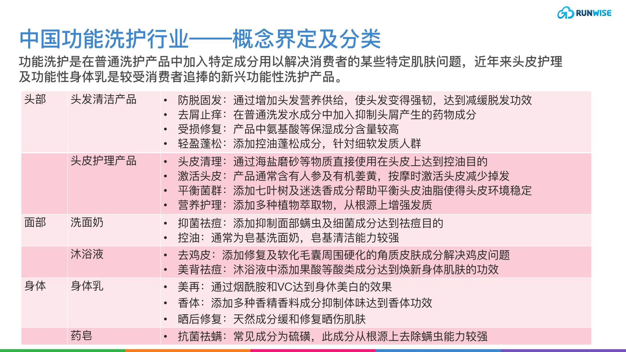功能洗护是为了解决消费者某些特定肌肤问题,在洗护产品中加入特定成分。近年来,头皮护理及功能性身体乳是较为被消费者青睐的新兴功能性洗护产品。