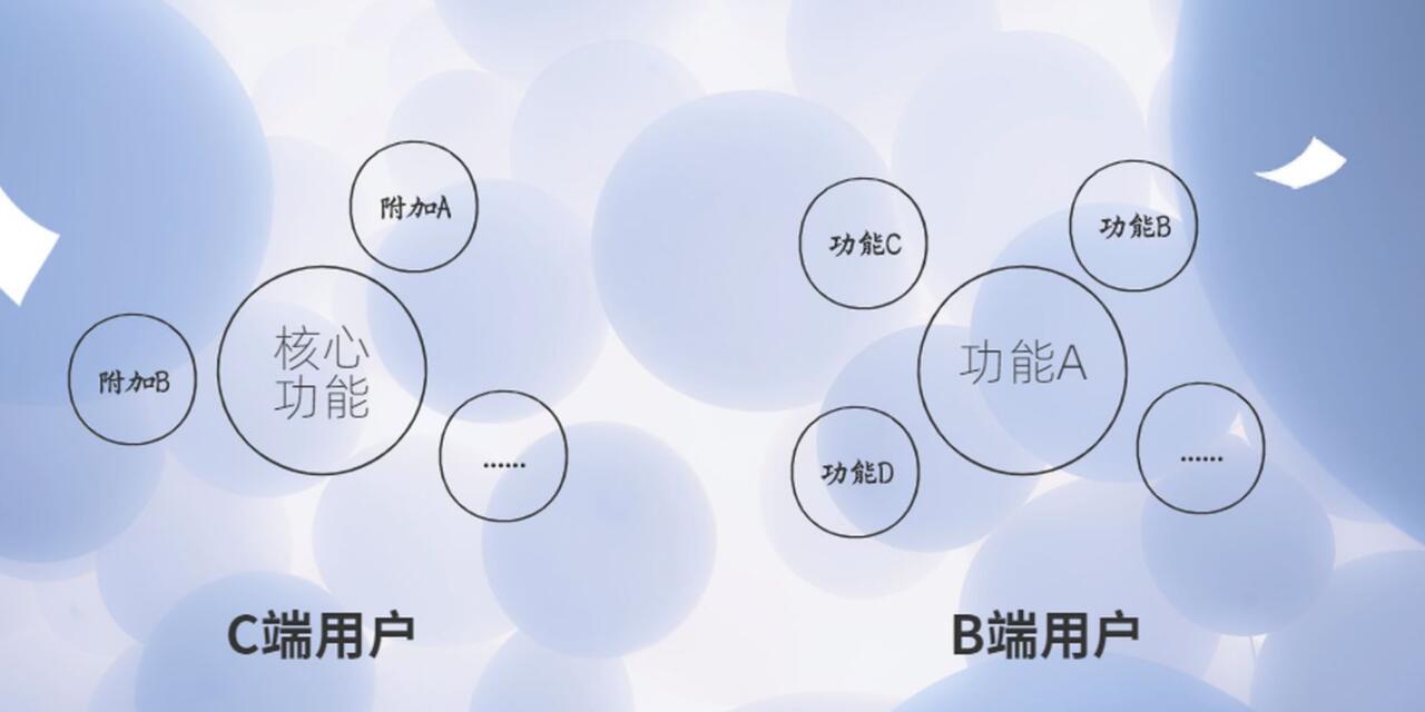 从用户的使用场景上看, C端产品用户使用产品随时随地, 用户关心的是用户自己, 解决的是自己的痛点, 而不是进行协作。
